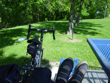 ![]() Day 8: Tuesday Tm: 4:34:46 Today the biking was slow, hilly, curvy, and overall crappy. Thankfully, the destination is very pleasant. I had headwinds, and the roads were BAD from Smithville to Weston, especially from Tracy to the junction with road JJ ... the worst road I've ever ridden on. It was narrow and hilly with no shoulder. It was curvy and filled with trucks. It took me forever to get past that short stretch of road. It is NOT SAFE FOR BICYCLES. I rode in the tall grass, walked my bike, and very carefully rode on the pavement (often for only 30 seconds at a time). It is STUPID to include this road as part of the route. I also missed a turn (there are so many!) because I was watching oncoming traffic. I had to backtrack three miles or so. Thankfully, after Weston the road (45) parallels railroad tracks, which I've learned means the road is flat. It was so windy I could only average 10 miles an hour. But at least the road was smooth and had rideable shoulders. The traffic was heavy, but it didn't bother me because I could ride the shoulder. The lack of hills meant I could spin instead of climbing and descending. Spinning makes the wind bearable. I just get down in the drops and get a rhythm going, maybe pray the Rosary or something to take the mind off the wind. I did stop for lunch in Weston. It seems like a nice little town. I also rested in their city park (pictured above). After Weston I eventually turned south on highway 59, where the route called for me to cross a busy two-lane bridge that had no pedestrian access or shoulder. I stopped at a C-Store and asked for a number to the cab company. Having seen the bridge and the traffic crossing it, I didn't dare attempt the ride. But the clerk at the store offered to give me a ride across, if I could wait until the end of her shift. Just then, the Frito-Lay delivery guy walked up and offered me a ride across the bridge in his delivery truck. He was headed that way anyhow. So I took him up on his offer. The truck had plenty of room and, when across, the guy offered me a ton of free beef jerky (expiration date: today). And so, I crossed into Kansas in a truck. This completes my ride across Missouri. Now in Atchison, I rode to the Amelia Earhardt birthplace, lounged at a riverside Lewis & Clark pavilion that had a great view of the river, and visited St Benedict Church. I prayed for a while in that beautiful church, thanking God for the safe travel thus far. I prayed Evening Prayer, and left. This church is on the campus of Benedictine College, so I rode around campus. Near the abbey there is an awesome scenic outlook. I could see for miles into Missouri, where I had just been. This is a great town of about 10,000 people. The downtown and riverfront are very nice. The landscaping, buildings, etc., are all well-kept. The restaurants in town look very inviting. I eventually checked into the Super 8, walked to the Dairy Queen for supper (it was nearby) and now I'm relaxing. Tomorrow I will pedal 60 miles to Falls City in Nebraska. |